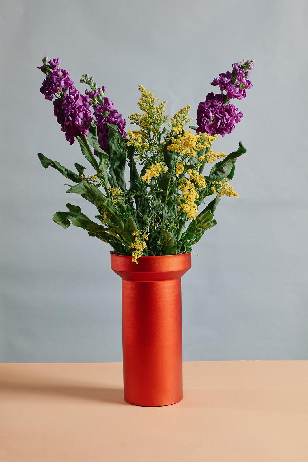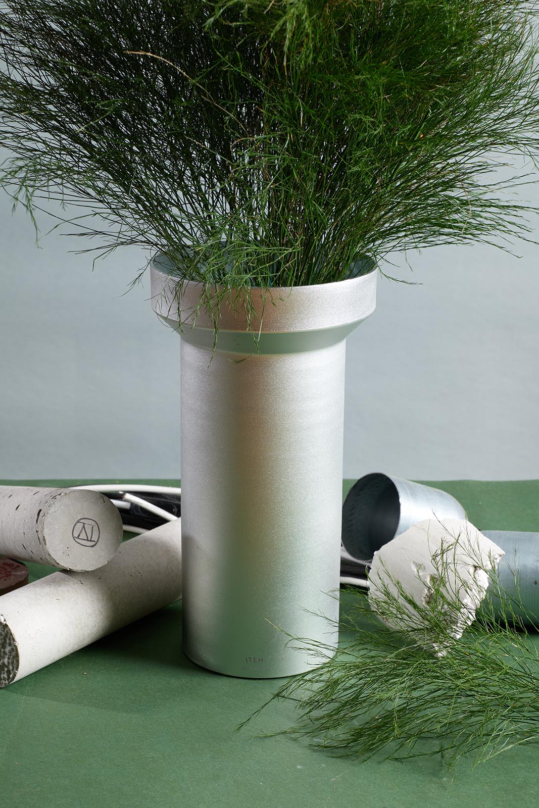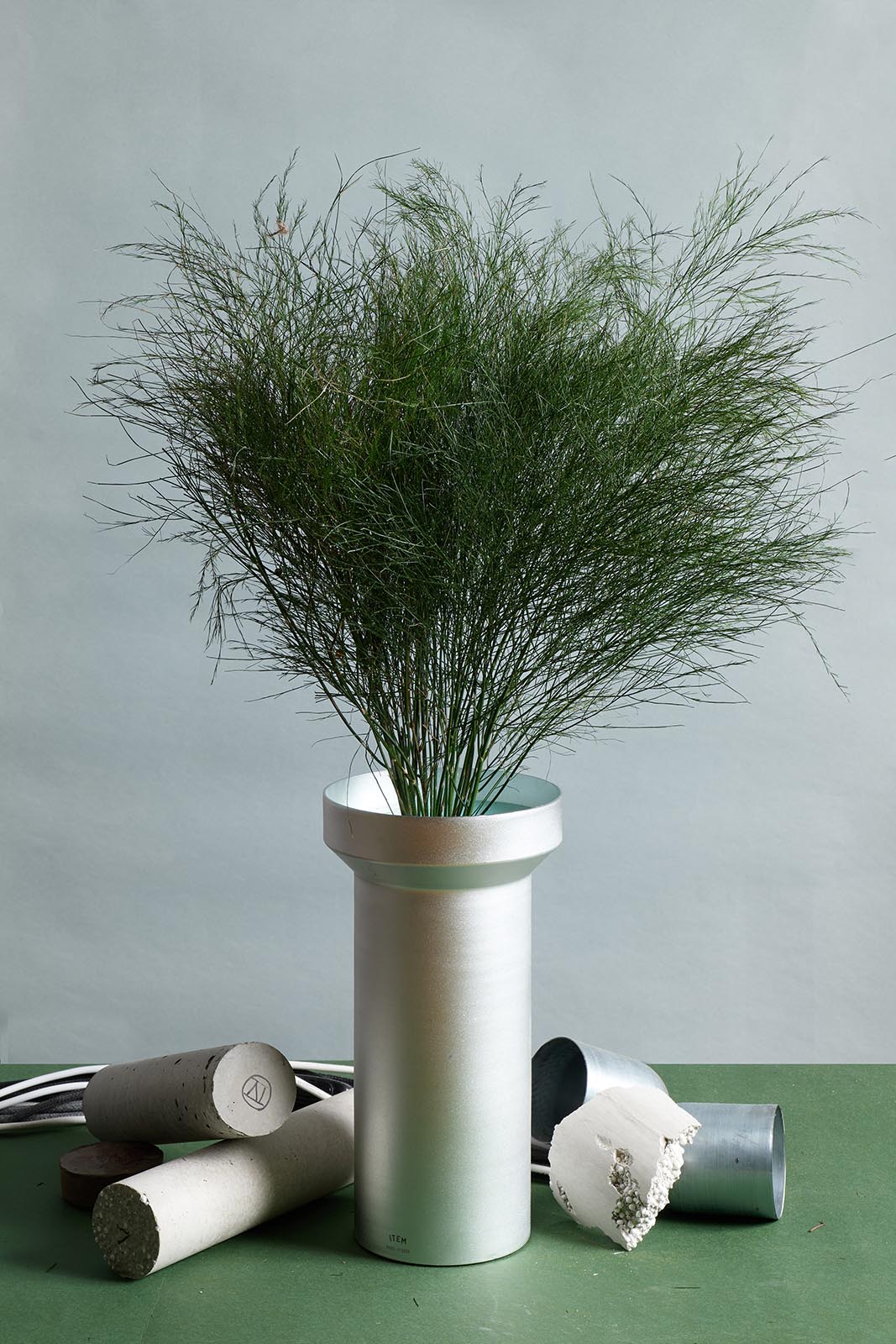 Florero XL para ramos enteros o hojas individuales, cuenta con dos accesorios para organizar los arreglos botánicos. Pieza realizada en aluminio anodizado, producida en series limitadas en distintos colores.